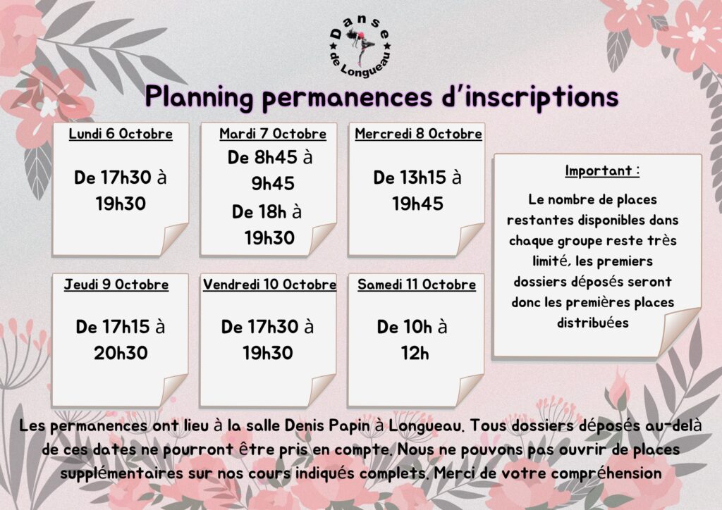 Vous trouverez également ci-dessous, le planning des permanences d’inscriptions pour le dépôt des dossiers complets (semaine du Lundi 06 Octobre au samedi 11 Octobre 2025, directement à la salle Denis Papin). 🗓